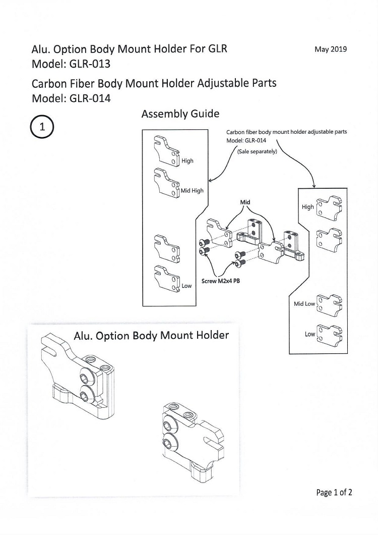Carbon fiber body mount holder adjustable parts - GL Racing, Mini RC cars
